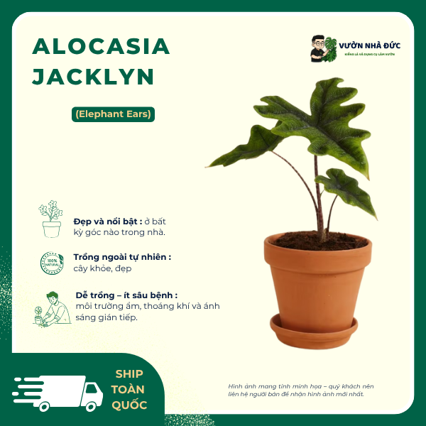 Bạn ở chung cư, nhà mặt đất, hay đang tìm giải pháp decor quán cà phê, văn phòng, sảnh khách sạn? Cứ chọn Alocasia Jacklyn, không gian sẽ “bật mood”, tăng sức hút không ngờ. Cây hợp cả với người bận rộn – dễ chăm, bền lâu, chi phí thấp, hiệu quả cao.