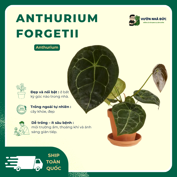 Đặt mua ngay ” Anthurium Forgetii ” chuẩn form tại Vườn Nhà Đức. Xem hàng sẵn và ưu đãi tại Sản phẩm, hoặc cần tư vấn riêng, nhắn ngay Liên hệ.
